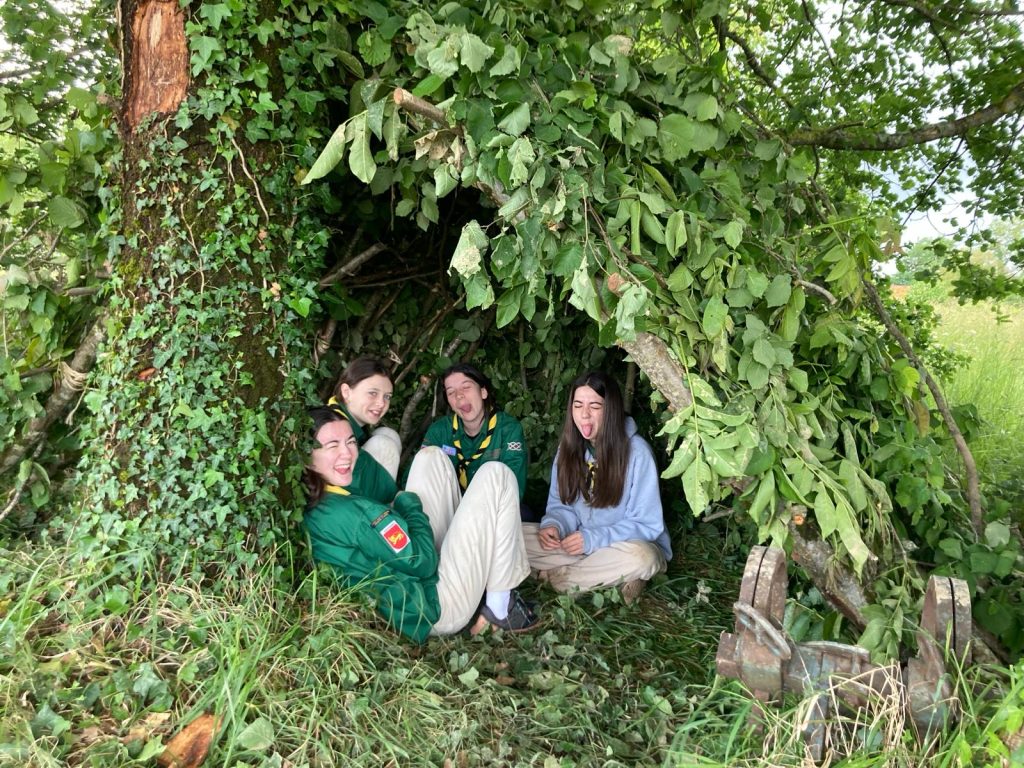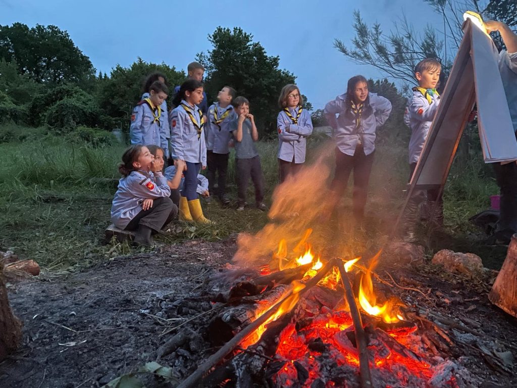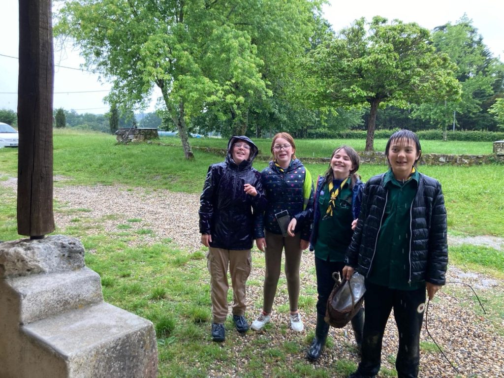 Les éclaireurs, ont bravé l’humidité de ce mois de mai et dormis sous la tente. Chaque équipe s’est lancé dans son premier défi : les lionnes ont construit une cabane et les lynx sont partis sous la pluie explorer les environs. tous été bien humides en fin de journée mais ravis de leur première réussite fédératrice en équipe.