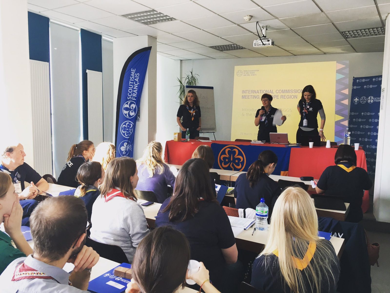 La Fédération du Scoutisme Français a accueilli, lors du weekend du 25 et 26 mars 2017, les commissaires internationaux AMGE de plus d’une quinzaine de pays de la région Europe AMGE afin de préparer la Conférence Mondiale de l’Association Mondial des Guides et Eclaireuses qui se tiendra à Delhi, en Inde, du 17 au 23 septembre 2017.