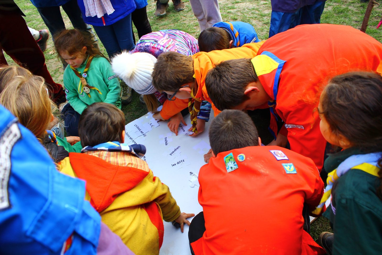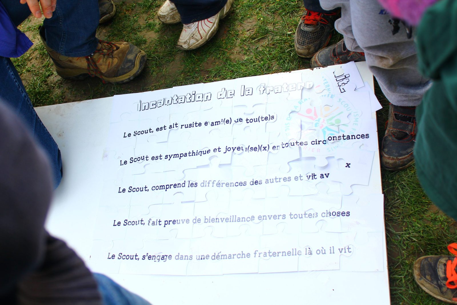 Les enfants présents ont pu jouer à différents petits jeux. Tous participaient ensemble quel que soit leur âge et leur mouvement. Un grand jeu a notamment été fait autour d’une histoire : le but étant de réunir toutes les parties d’un puzzle sur lequel était écrite « l’incantation de la fraternité » qui permettait d’ouvrir le coffre qui renfermait la « cape de la fraternité ».