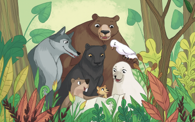 A. : Si, et même mieux, on protège la nature avec tous les animaux ! Protéger la nature, ça peut se faire avec Fiber lorsqu’on fabrique une table de froissartage en respectant les arbres de la forêt. Ça peut se faire avec Baloo en décidant de peindre un tableau à partir de peinture végétales fabriquées maison. On a décidé que ce ne soit plus avec un seul animal, mais avec tous et toutes.