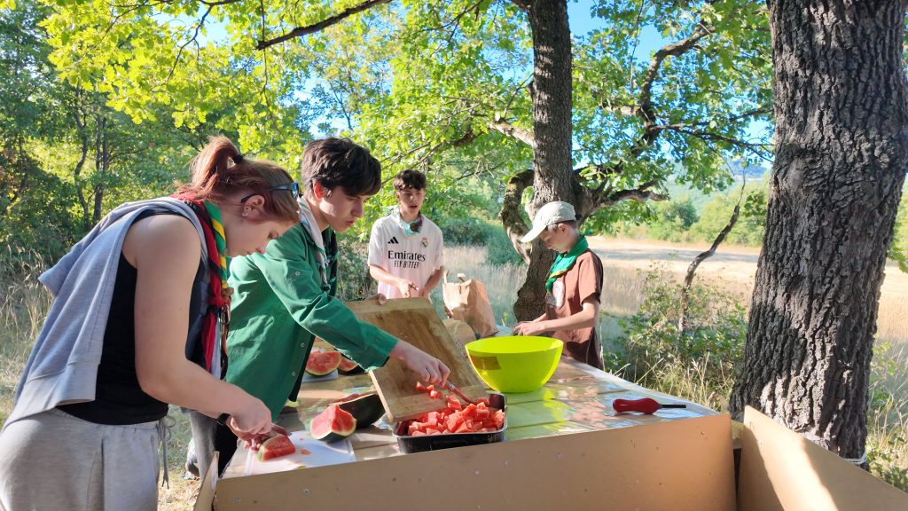 S’en suit le temps d’installation des tentes, le goûter, la visite de camp … mais surtout la préparation du repas !