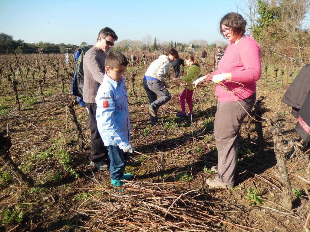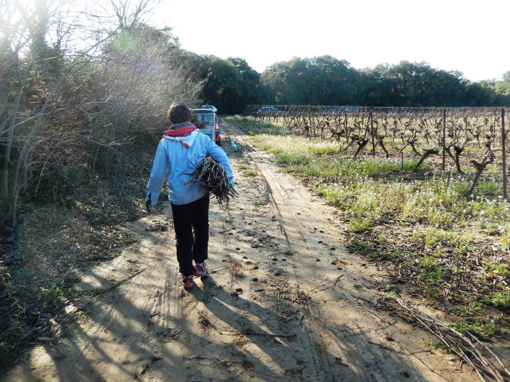 Merci à Laurence qui a contacté une famille de vignerons de Junas, en leur demandant s’ils pouvaient nous donner les sarments de leur vigne afin que nous allions les ramasser pour faire des fagots et les vendre. Habituellement, les sarments sont broyés par les vignerons pour faire de l’engrais.