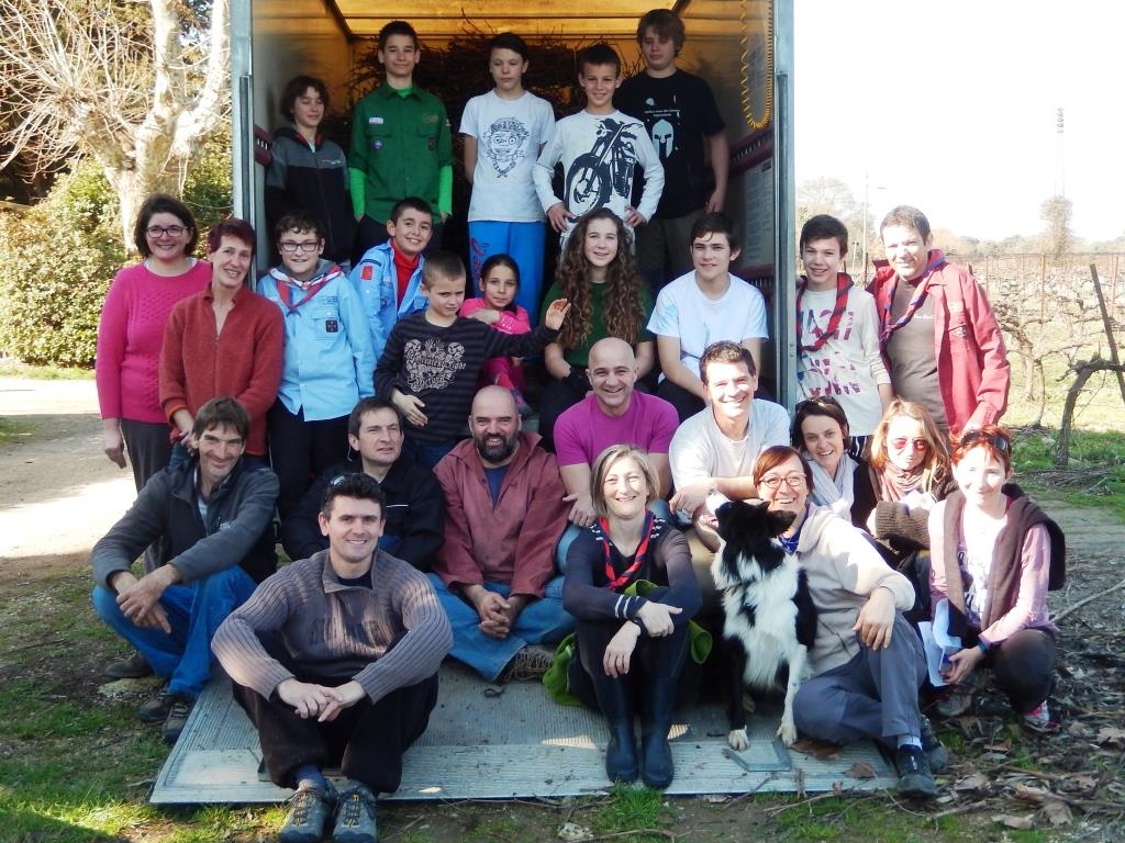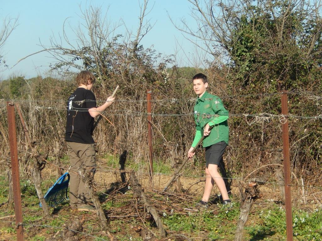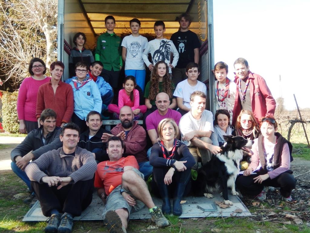 Nous nous sommes retrouvés une trentaine de personnes louveteaux, éclais et parents à Junas le 19 février 2017 pour une opération ramassage des sarments et conception de fagots de 9h 30 à 12h30.