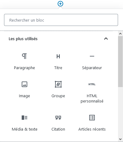 En cliquant sur le + les possibilités d’ajout apparaissent.
