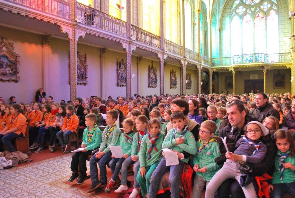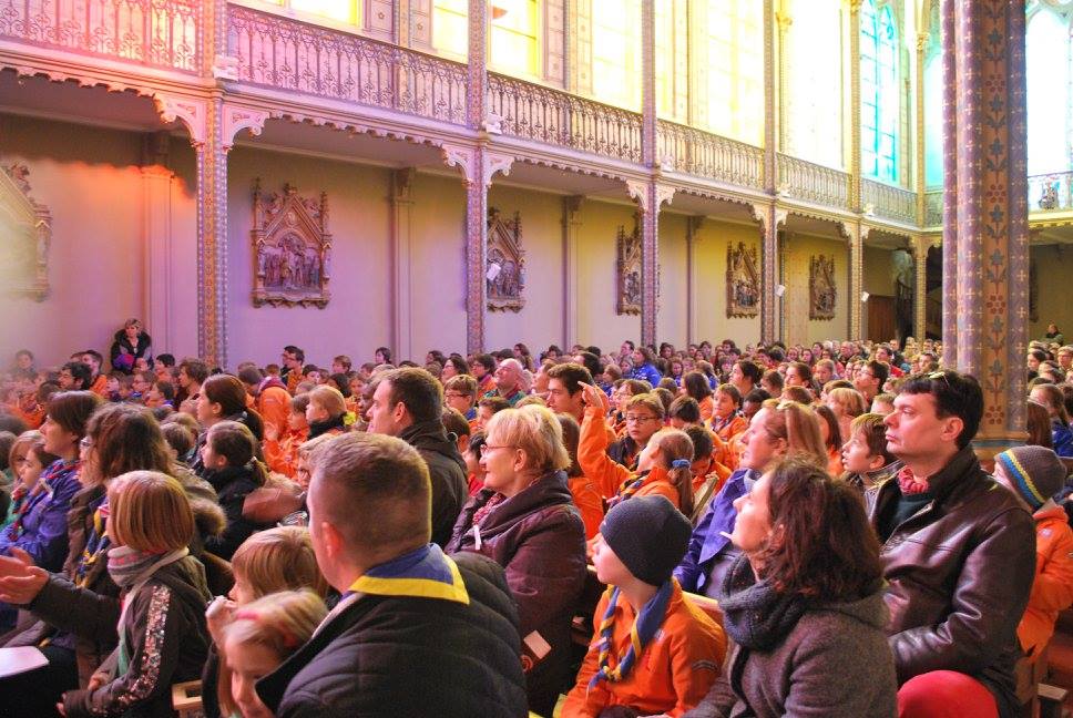 Ce rassemblement a également été l’occasion de chanter plusieurs chants (« Des milliards de chemins », « Evenou Shalom », « Dans nos obscurités », « Que vive ton âme à te louer », « Ne sens-tu pas claquer tes doigts », « Nous devenons chemins »), regarder un diaporama photo des différentes délégations, échanger nos petits livres confectionnés la veille, vu un montage vidéo sur l’historique de la Lumière, lu quelques paragraphes d’un texte intitulé « La Lumière de Paix, une espérance qui change le monde » et enfin, distribué la Lumière. Les enfants, comme les responsables et parents présents, étaient tous très attentifs lors de la célébration.