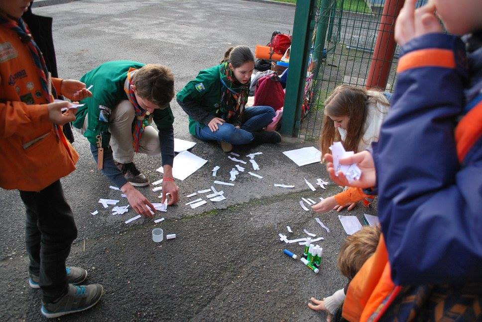Au dîner, tout le monde s’est régalé : soupe de potirons, tomates ou légumes – pâtes bolognaises – bûche glacée. Un vrai festin que nos éclaireurs étaient fiers d’avoir préparé ! Le dîner était plutôt calme (relativement bien sûr) quand tout à coup, un message arrive sur les tables indiquant que le Père Noël s’est fait voler les clés de son traîneau. Les suspects : sa fille, son fils, le lutin des cadeaux, le lutin du traîneau et le lutin cuisine. Les jeunes ont enquêté plus d’une heure… jusqu’à apprendre que les clés du traîneau étaient dans la poche de la veste du Père Noël et que sa fille et le lutin des cadeaux étaient amoureux. Une fin heureuse qui a fait faire de beaux rêves à nos jeunes fatigués.